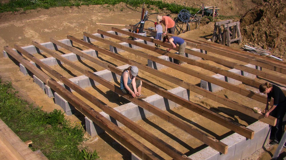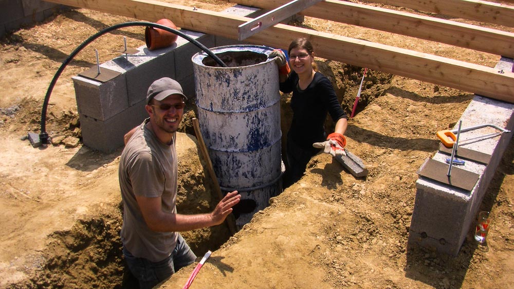 Wie schon geschrieben soll unser Häuschen vom Boden abgehoben sein. Grund für die gewünschte Entkoppelung zwischen der Fundierung und der Bodenplatte ist die Tatsache, dass die Bodenplatte mit Stroh gedämmt werden soll und eben dieses von uns sosehr geliebte Material aber auch gar keine Feuchtigkeit verträgt. Allen möglichen Problemchen mit Feuchtigkeit wollten wir so aus dem Weg gehen.