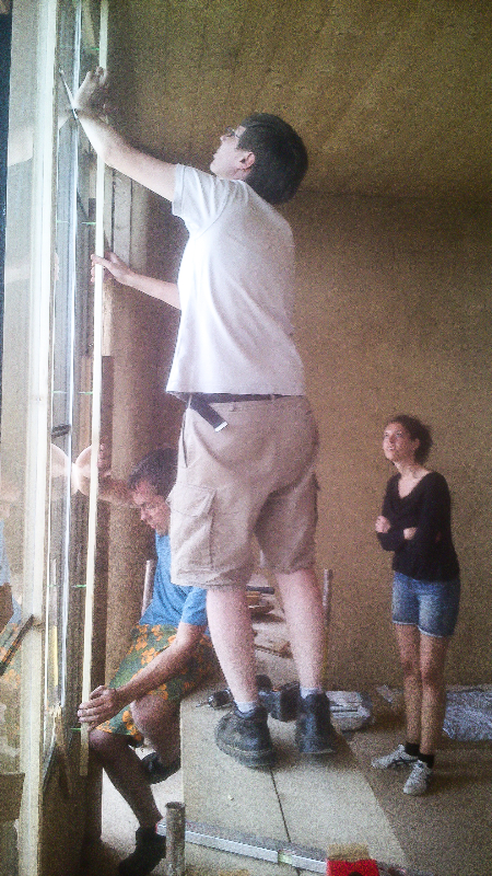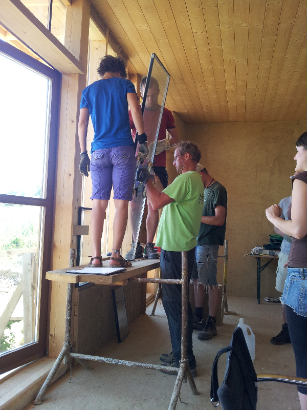 Unser learning: Fixverglasungen ja, Türen und öffenbare Fenster eher njet – Denn mit dem Standard Maschinen Park als auch Wissen und Geschick bleibt die Türe ein bisserl zugig…