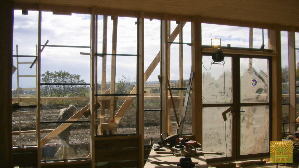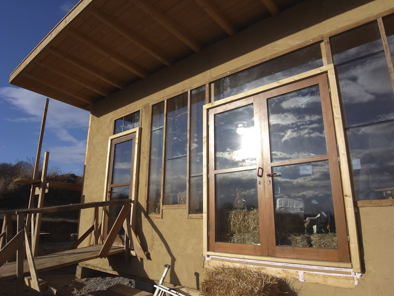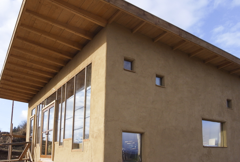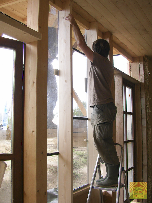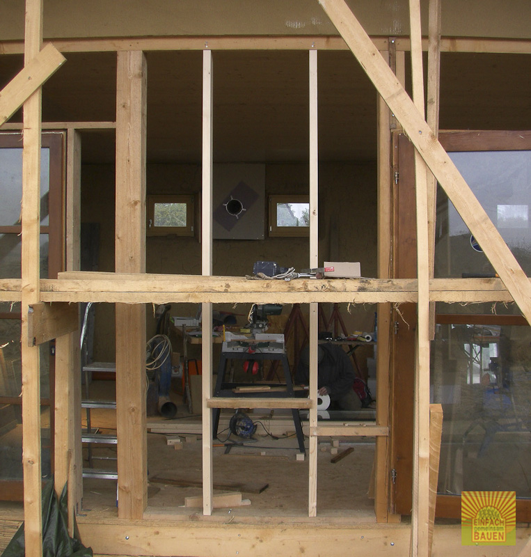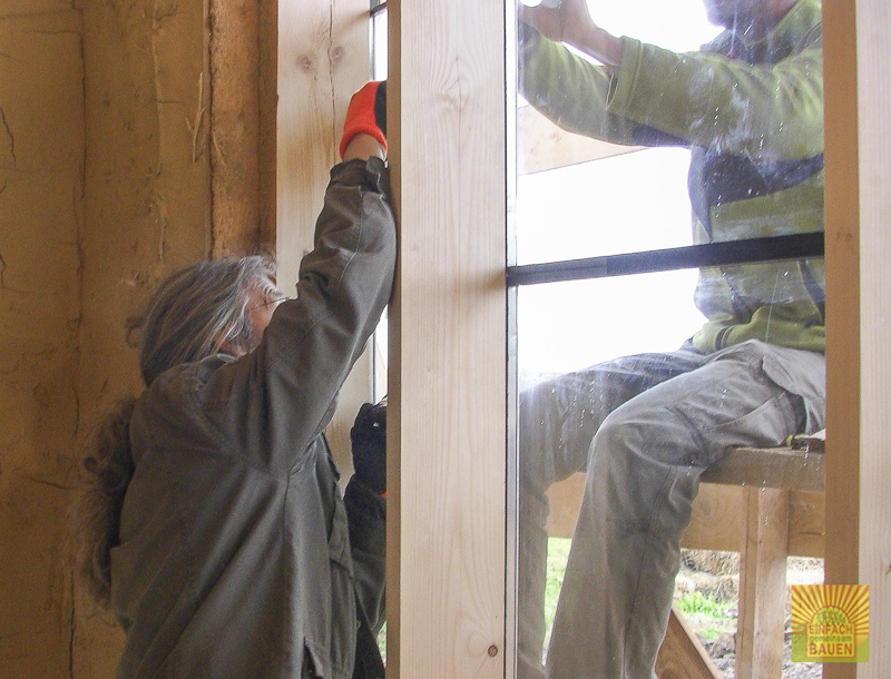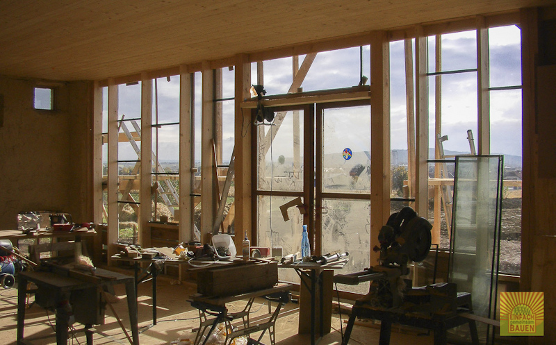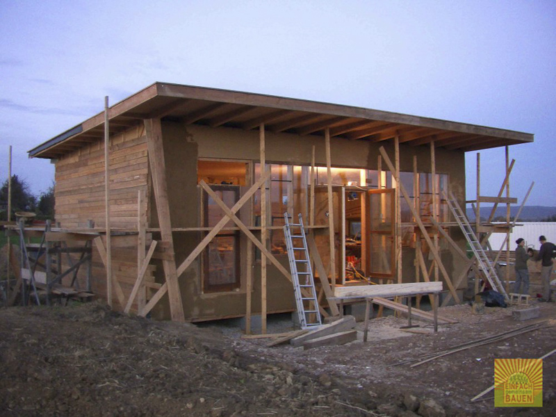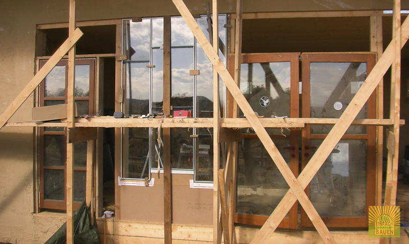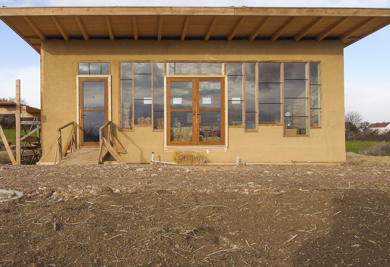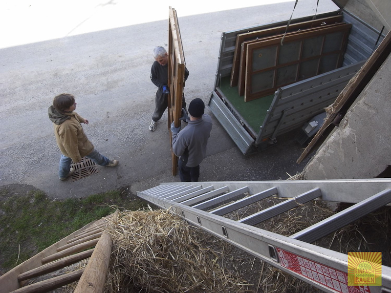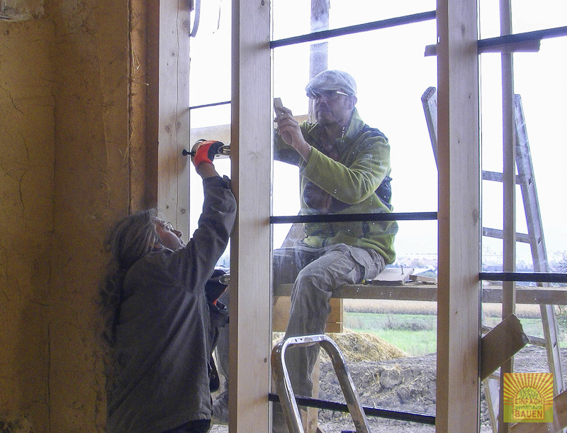 Materialien: Holz, Stroh, Lehm, Recyclingfenster