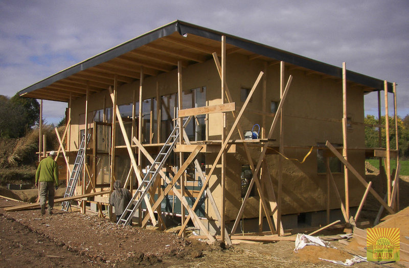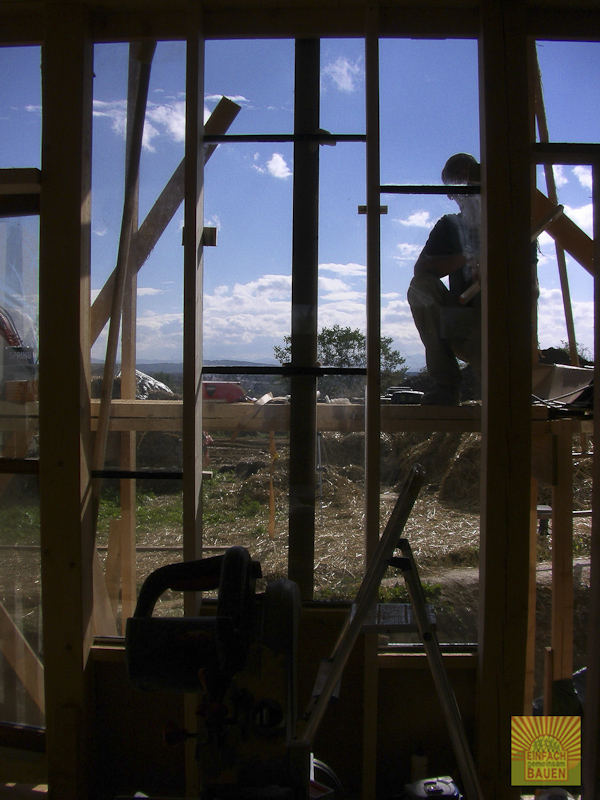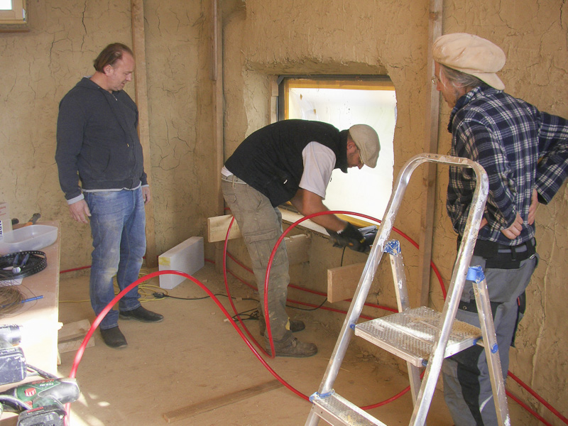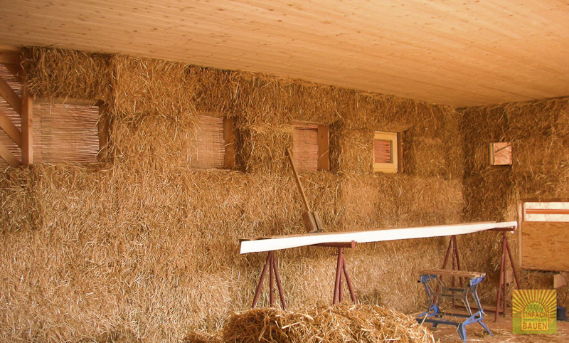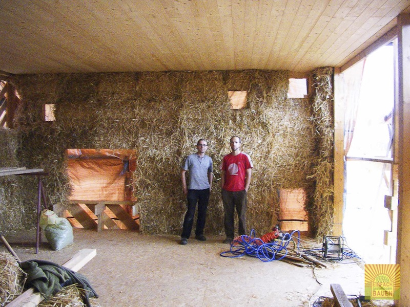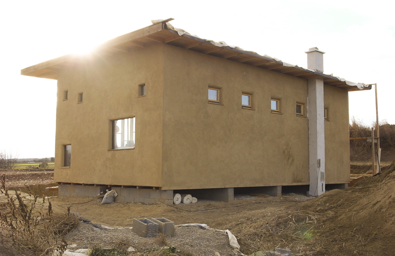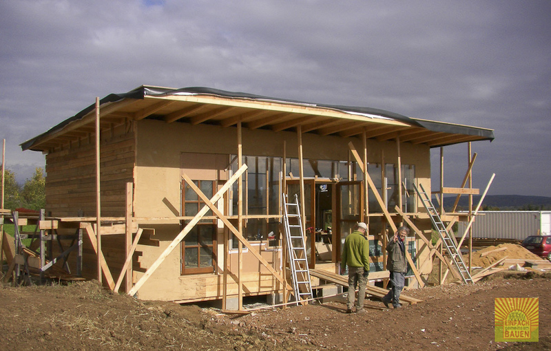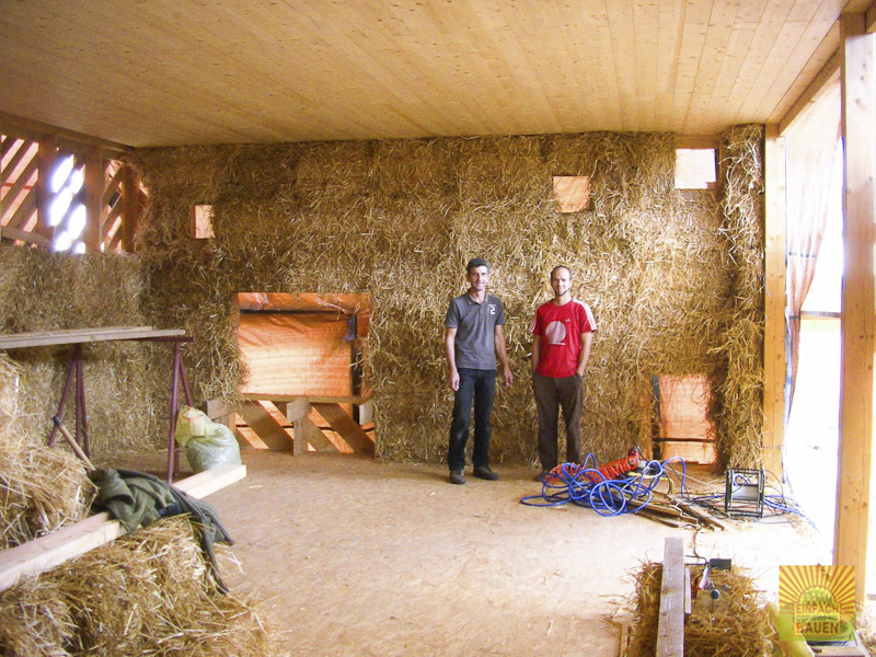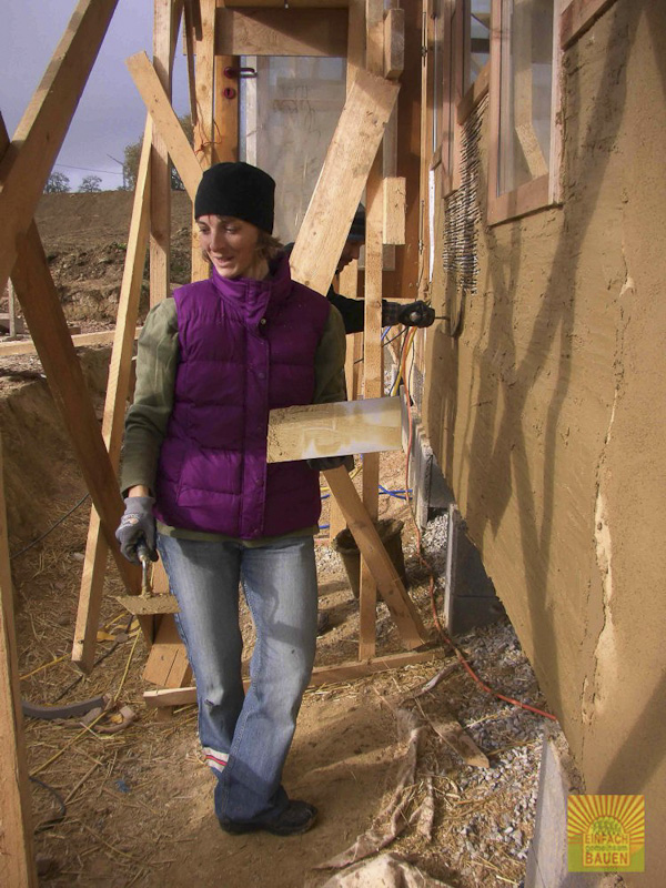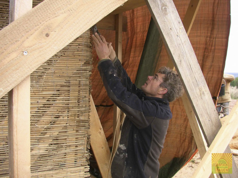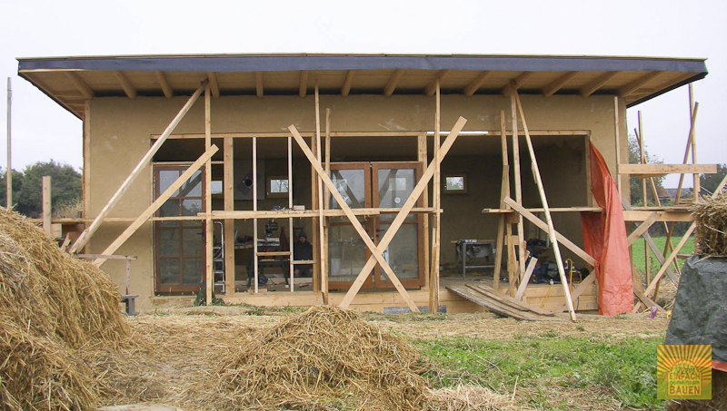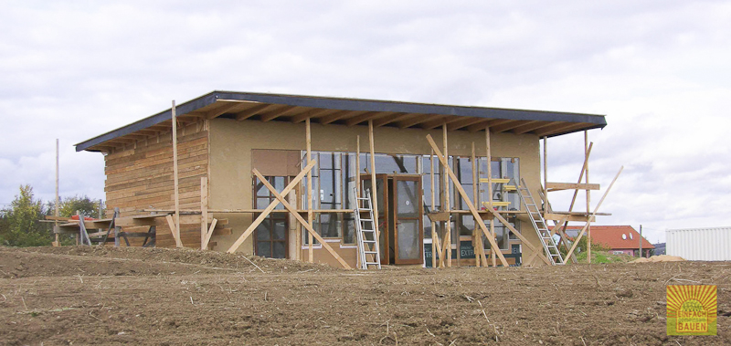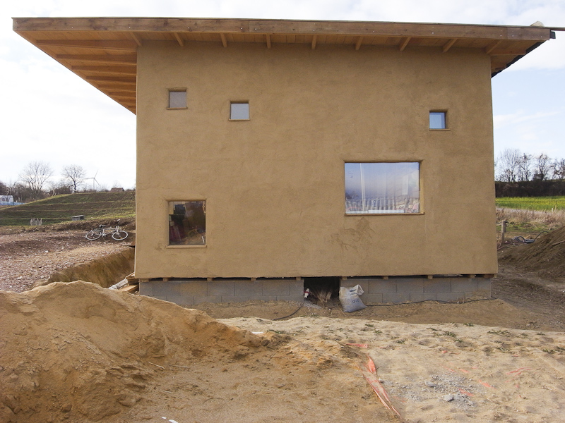 Materialien: Holz, Stroh, Lehm, Recyclingfenster