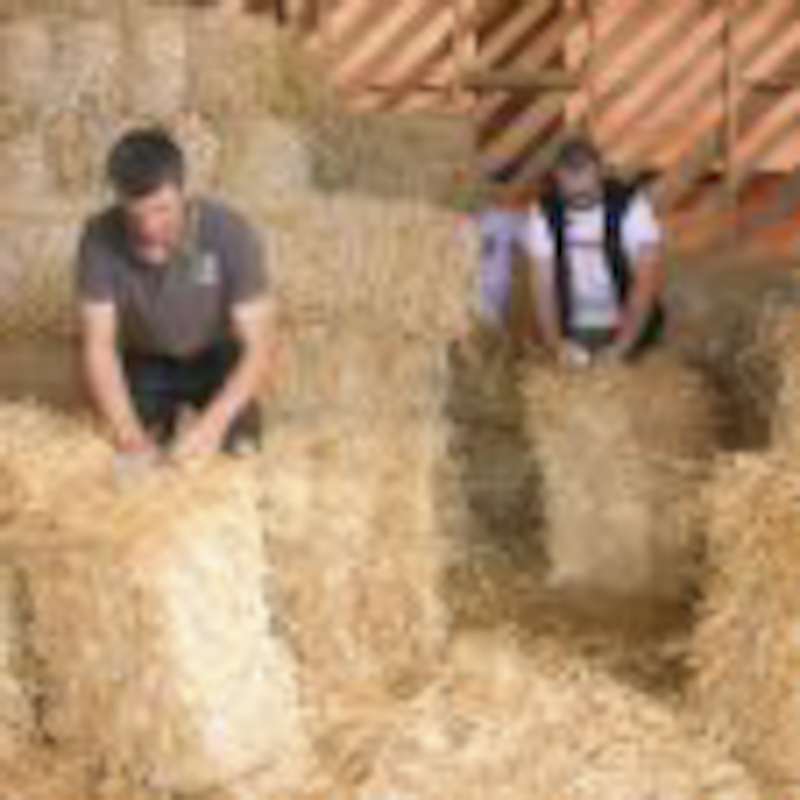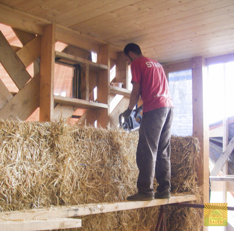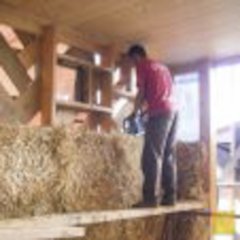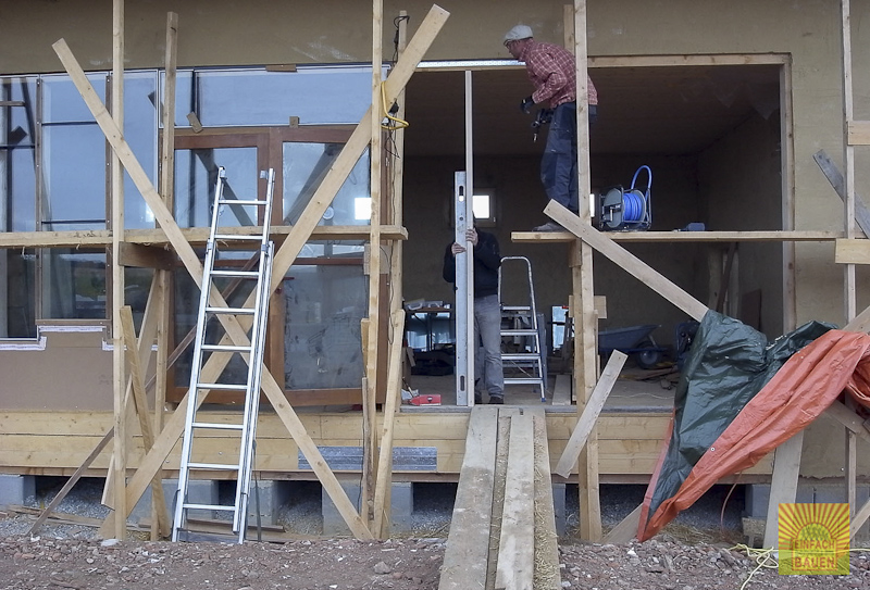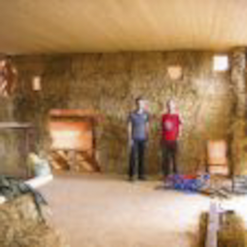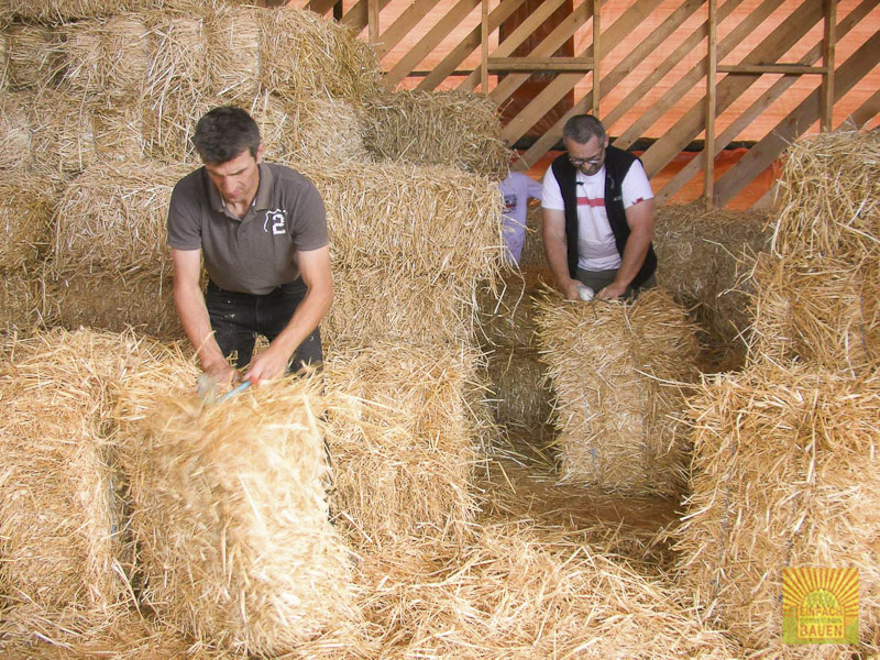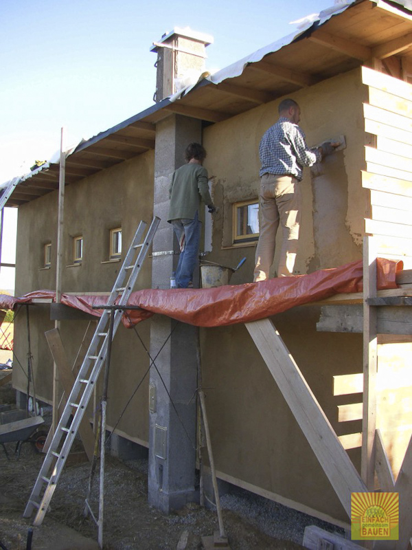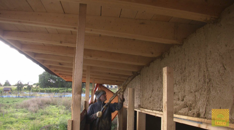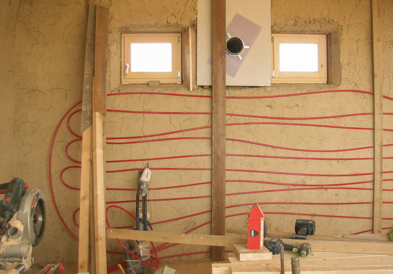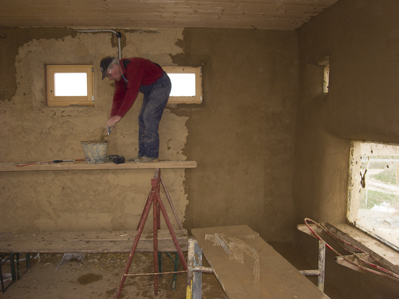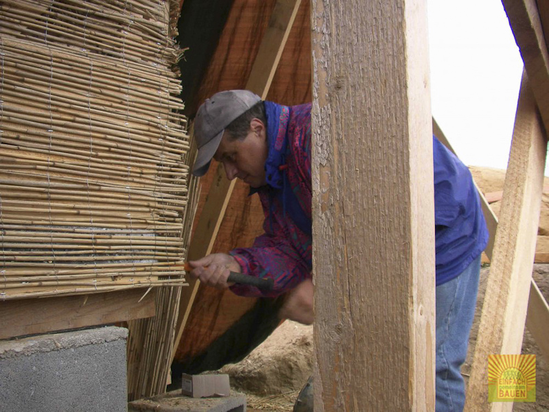 Materialien: Holz, Stroh, Lehm, Recyclingfenster