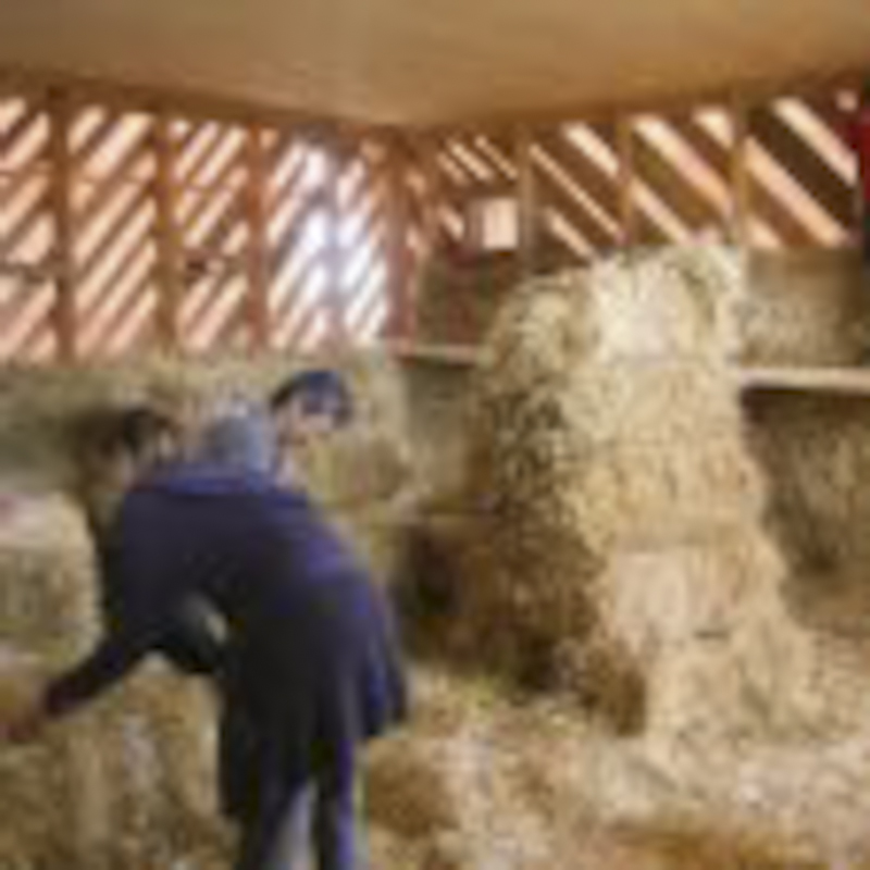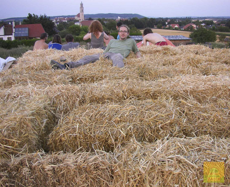 Es dient dem Gartens der Generationen als Treffpunkt und Versammlungsort. Zum Einsatz kamen großteils nachwachsende Rohstoffe (Holz, Stroh, Lehm) und wiederverwendete Bauteile (Recyclingfensterund -Türen).
